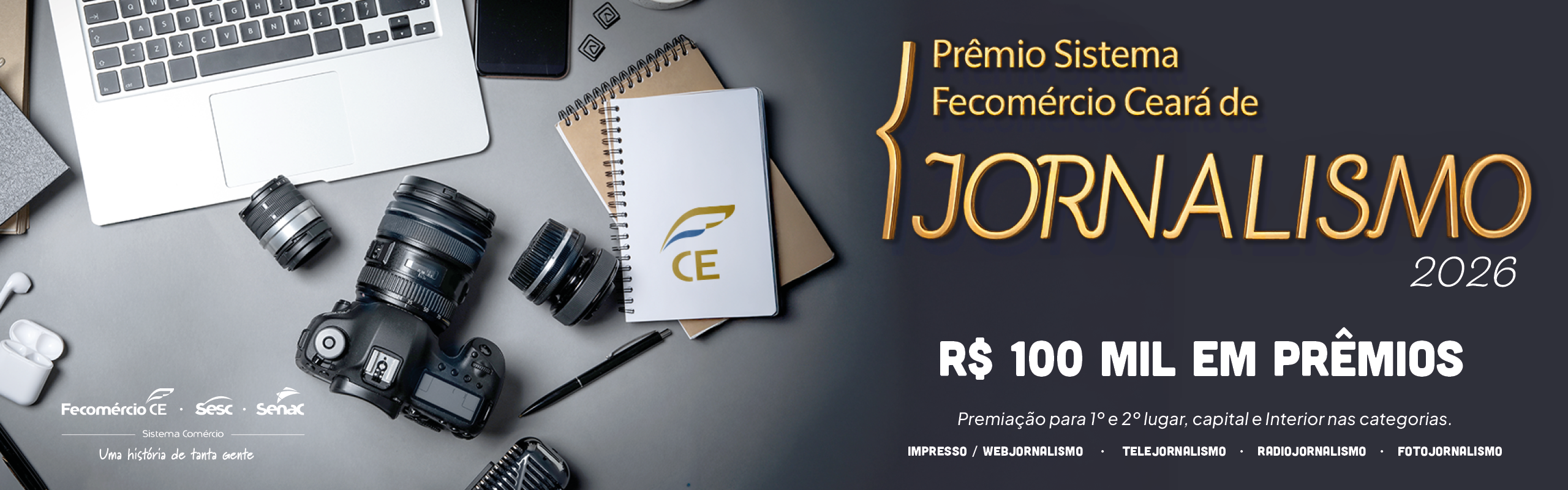 A premiação total é de R$ 100 MIL e você, profissional de imprensa de qualquer lugar do Ceará, pode concorrer nas seguintes categorias:
