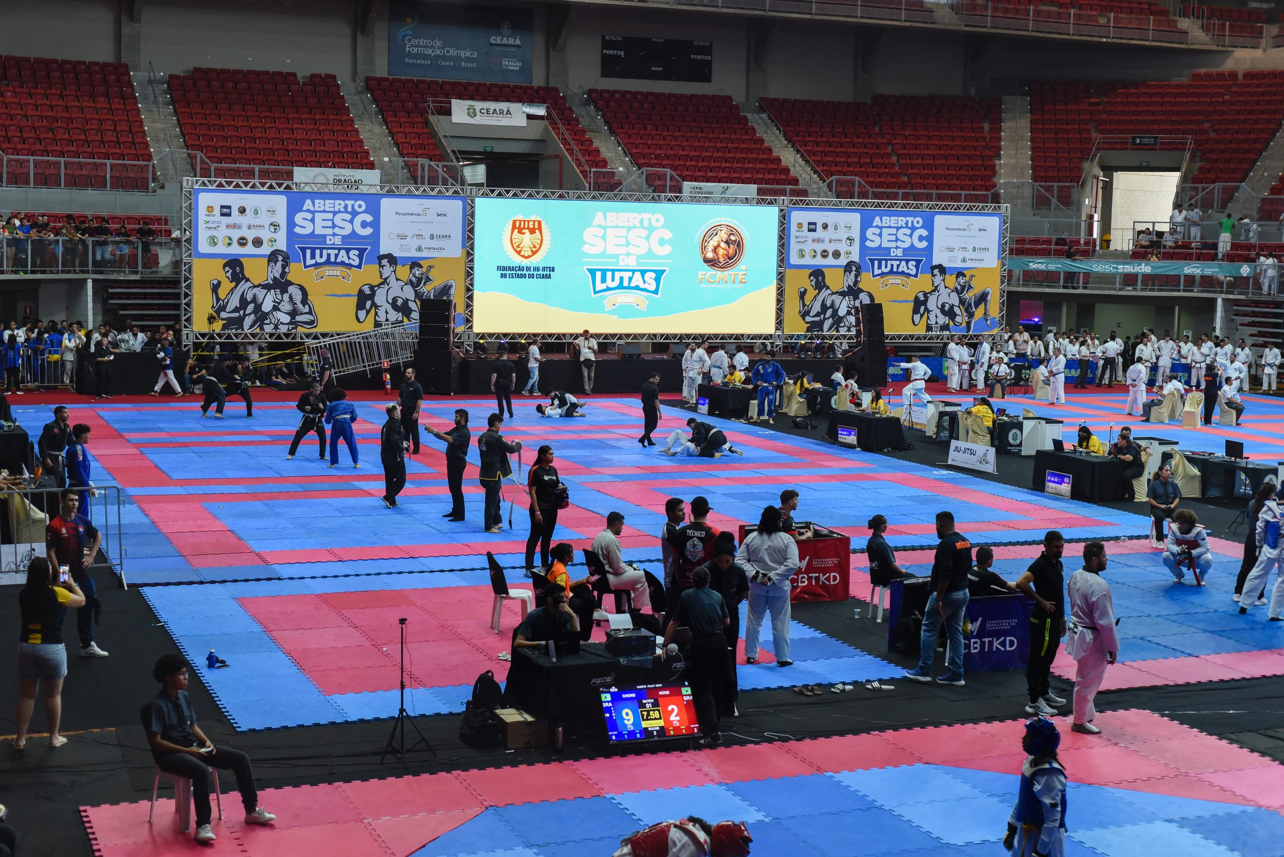 O Aberto Sesc de Lutas é um grande evento esportivo promovido pelo Sesc, por meio do Sistema Fecomércio Ceará, que reúne atletas de diferentes artes marciais em um ambiente de competição, integração e valorização do esporte. Com 10 modalidades competindo simultaneamente em um único espaço, o evento fortalece o cenário das lutas no estado, amplia a visibilidade dos atletas e impulsiona o desenvolvimento técnico e profissional dos competidores.